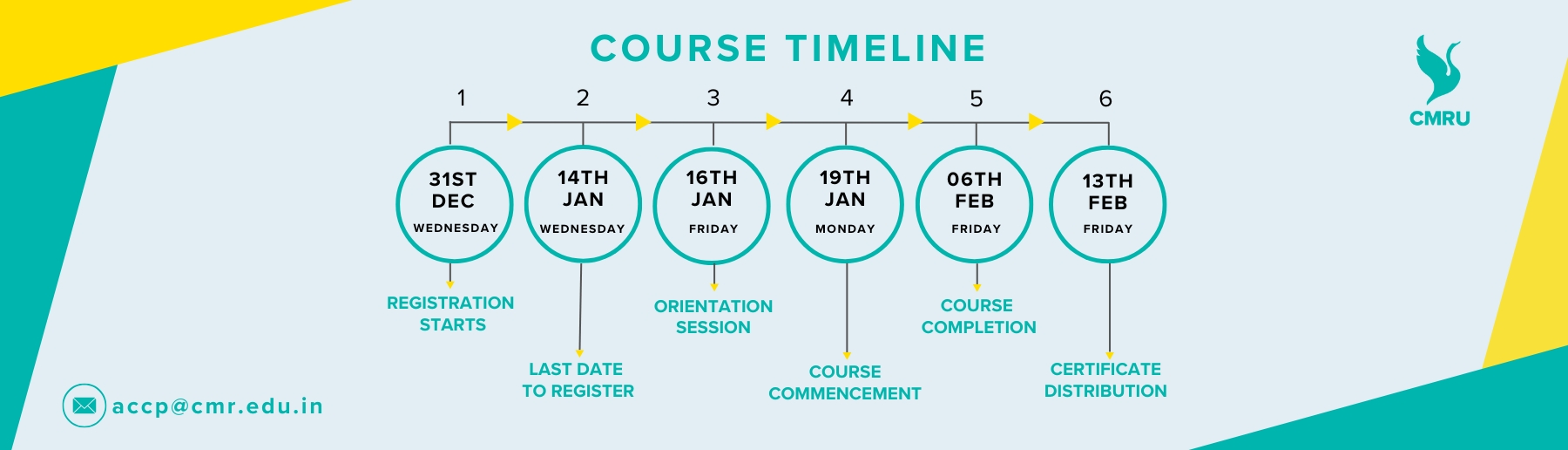 With this vision and mission in mind, we are thrilled to announce that admission for CMR University’s Accelerated Credit Course Programme (ACCP) for 2026 has started and will be delivered online. It is now available for students from multiple streams. This innovative initiative presents students with the chance to proactively earn advanced certifications and credits while immersing themselves in modern, specialized fields, thus enriching their academic portfolio.