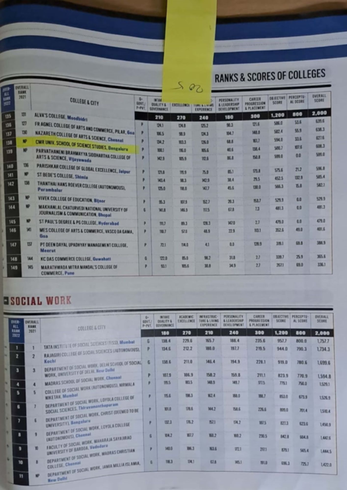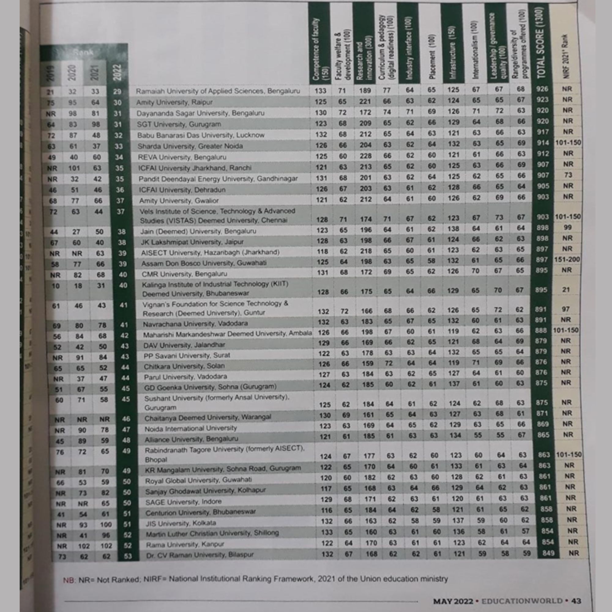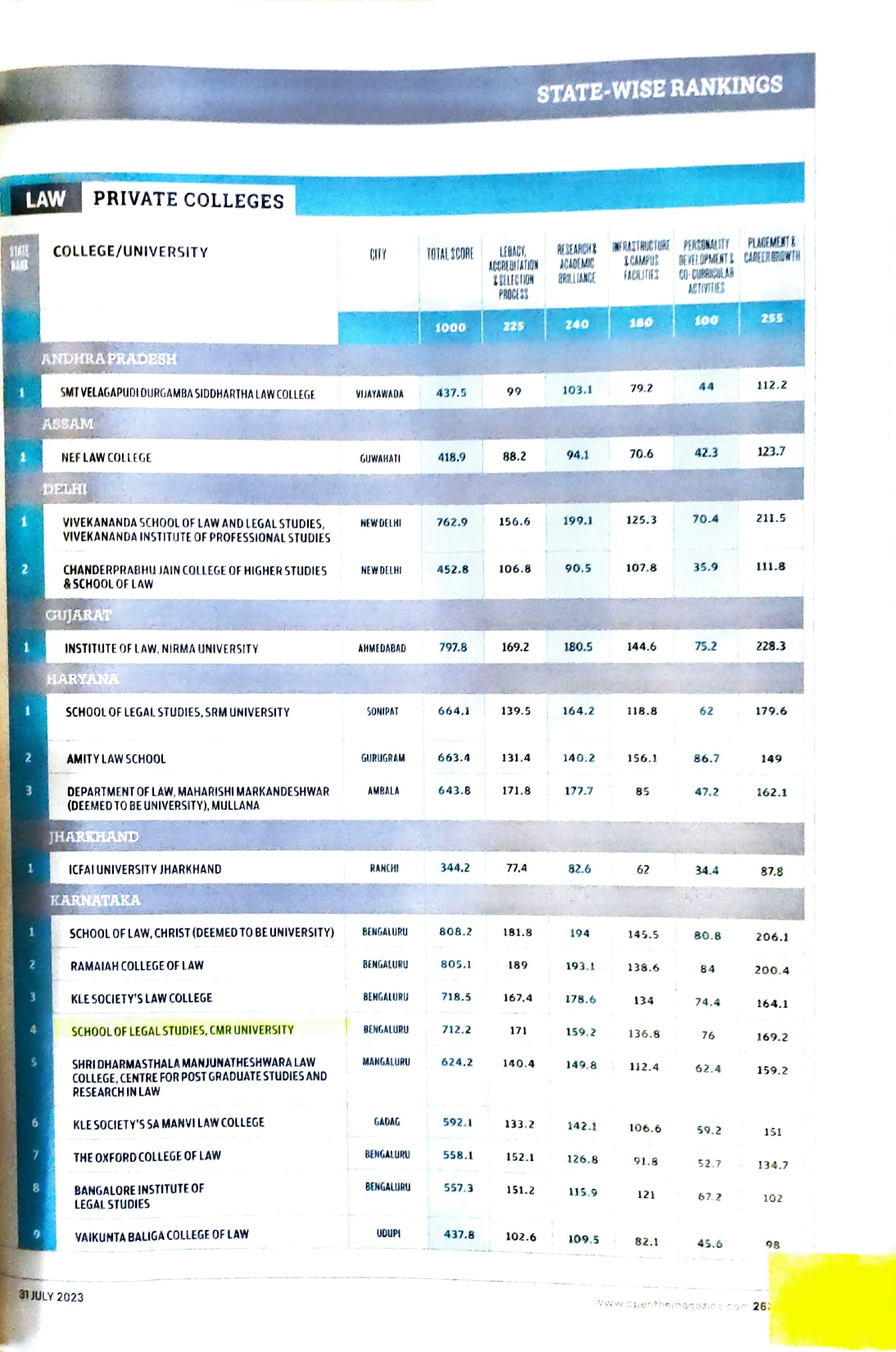 - CMR University School of Legal Studies Bengaluru Ranks 27 All India.
