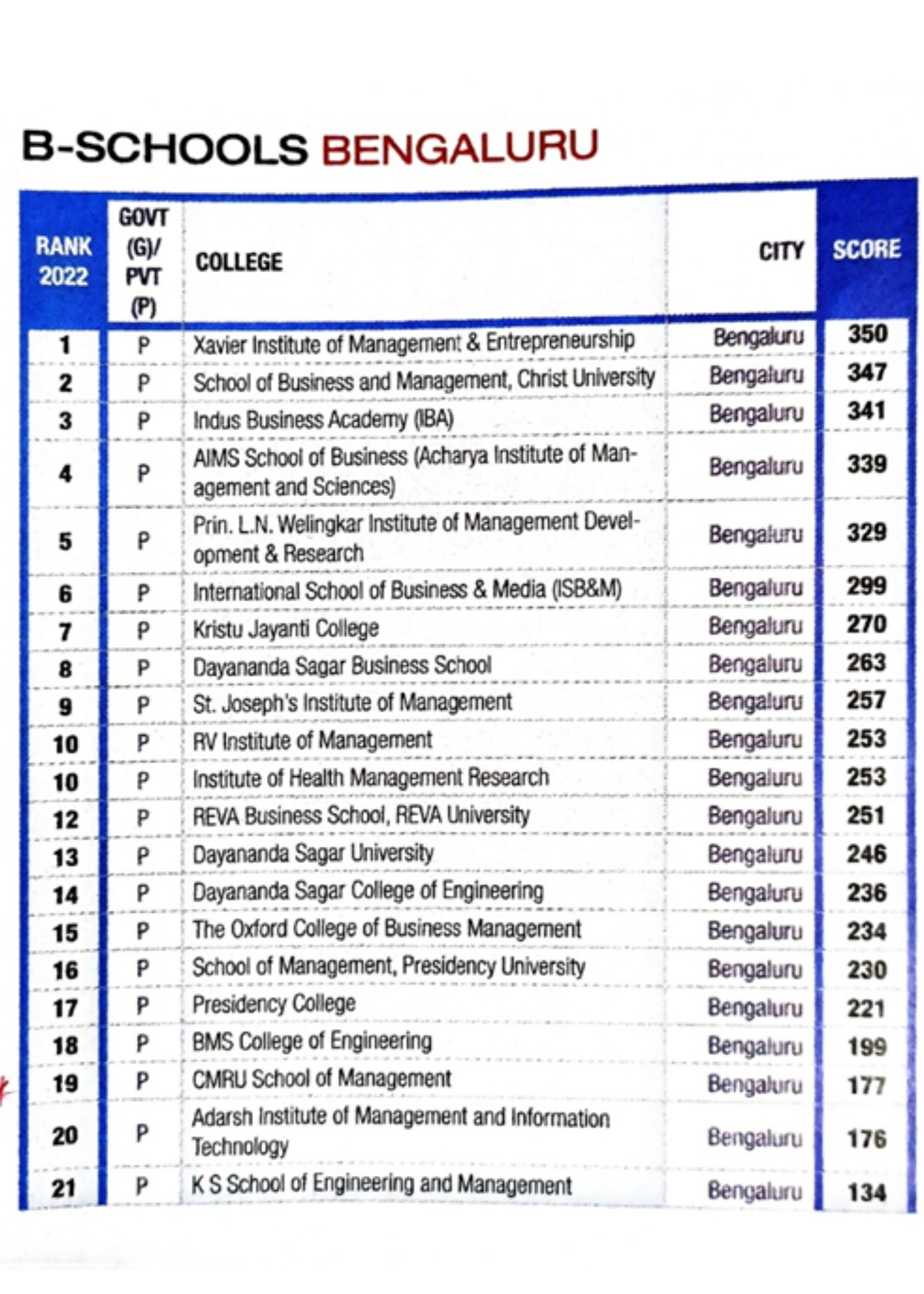 - India’s Top B-Schools 2022