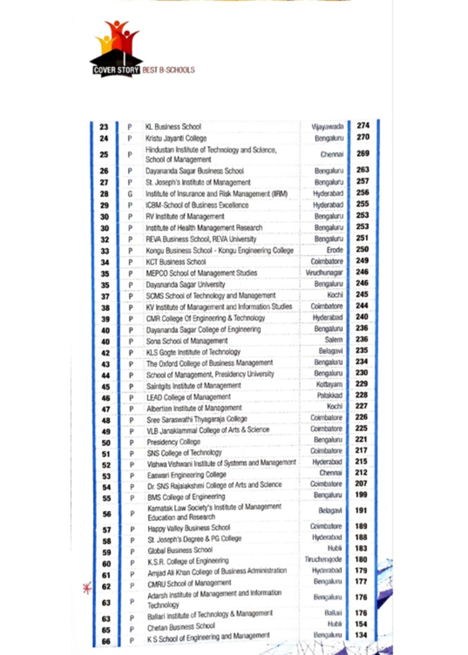 - School of Management,CMR University, Bengaluru. – BSchools Emerging All India, 23 Rank