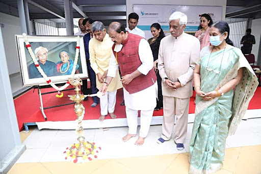 CMR University and CMR Group of Institutions Bengaluru celebrated its Founders’ Day on 19 November 2021 at the CMR University Main Campus in Bagalur, Bengaluru. This event was graced by Shri Arvind Limbavali, Former Minister, Government of Karnataka & Hon’ble Member of Legislative Assembly-Mahadevapura Constituencyalong with Sri K.C. Ramamurthy, IPS (Retd.), Member of Parliament (Rajya Sabha) & Chairman, CMR Group of Institutions as the Chief Guests. Dr Sabitha Ramamurthy, President, CMR Jnanadhara Trust & Chancellor, CMR University presided over the event. Sri K.R. Jayadeep – Pro Chancellor CMR University, Dr Tristha Ramamurthy – Provost & Vice Chancellor, CMR University, Smt. Shreya Reddy – Director of Finance and HR, CMR Group of Institutions, Shri. K.C. Jagannath Reddy – Secretary, CMR Jnanadhara Trust, Shri. K.C. Raju Reddy, Trustee, CMR Jnanadhara Trust and Shri Lakshmish, Trustee, CMR Jnanadhara Trust were also present on the dais.